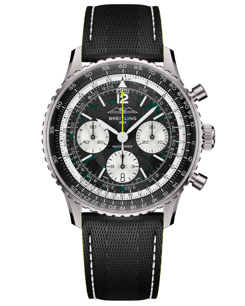 The collaboration begins with the Navitimer B01 Chronograph 43 Aston Martin Aramco Formula One Team, a limited edition of 1,959 pieces honoring Aston Martin’s first Formula One appearance in 1959. It is a bold expression of motorsport inspired design.