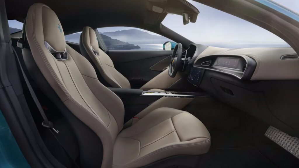 At 4,660 mm long and just over 1,300 mm tall, the Amalfi fits the classic GT profile. But its practicality has grown. The 2+ seating arrangement means the rear seats, while tight for adults, can handle children or luggage. The boot offers 273 liters of space, and with the rear seats folded, capacity increases. There’s also an optional front lifter to navigate speed bumps and driveways.