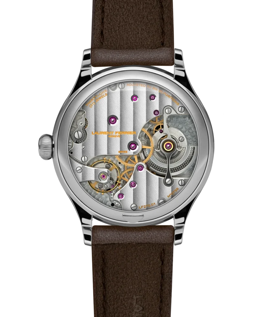 Importantly, this new reference is manual. While Laurent Ferrier is widely associated with its micro-rotor calibres, the choice to use a hand-wound movement reflects a more tactile philosophy. The LF116.01 movement offers an 80-hour power reserve and featuring a screw balance with Breguet overcoil for enhanced stability. The long-blade ratchet delivers a crisp click when wound, a mechanical detail that collectors often mention before anything visual. Robert noted how much care is taken in such moments. Even the generously shaped crown was designed with feel in mind. These are small decisions, but they define the experience.