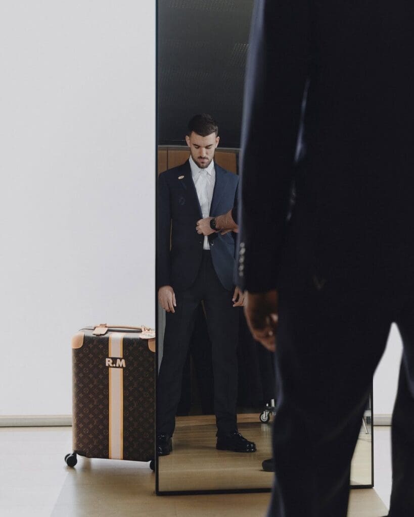 The design language is clear: minimalist luxury with a nod to heritage — both Real Madrid’s and Louis Vuitton’s. Think deep navy, crisp whites, and subtle golds — a palette that mirrors the elegance of both brands.