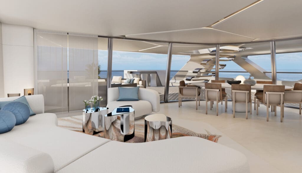 Below deck, the interiors are conceived as calm, light filled spaces. Natural materials, restrained tones, and a focus on proportion create an atmosphere that feels both luxurious and deeply relaxed. Comfort is delivered through design intelligence rather than excess.