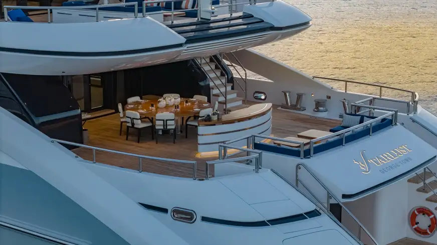 Fire, flavour, flow on STARLUST. Chef Nick Walden cooks with binchotan and resolve, letting seasonal produce, a guest’s preferences and the day’s conditions set the pace. The scene is elemental: the dry, clean smoke of binchotan lifting off a sun deck grill, the briny hush of waves a few steps away. In South East Asia, his menus pivot on lemongrass, tamarind, young coconut and just-caught fish, evolving with the itinerary. He even plots meals against the week’s tempo and the weather so lunches feel lazy when the light is high and dinners read as starry, fire-cooked finales. Beach BBQs are a signature, often blending pristine local seafood with select imported ingredients for balance. It is elevated simplicity, and it respects place without turning localism into a gimmick.