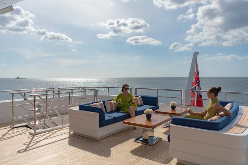 Made from scratch on KATHARINE. Chef Belinda’s rule is personal and unfussy: if it goes on the table, she made it. Warm crusts of fresh bread, bright house jams, and ice creams that carry clean, clear flavour do not shout, they reassure. KATHARINE gives her three moods to play with, from a sun deck table with a lazy susan to a long bridge-deck table with expansive views, then a formal dining room when the occasion asks. Croatia informed her summer, where tomatoes were the star, sliced for salads, blitzed for salsa or simmered into sauces you can smell before you sit. Salt-baked sea bass remains her showpiece, the crack of the crust releasing savoury steam. Training in Tokyo, Bangkok and Mexico gives her scope, from precise sushi to Michelin-level desserts or a comforting sticky toffee pudding. Guests often start with detailed preference sheets, then hand over trust. That is the point when surprise becomes part of service.